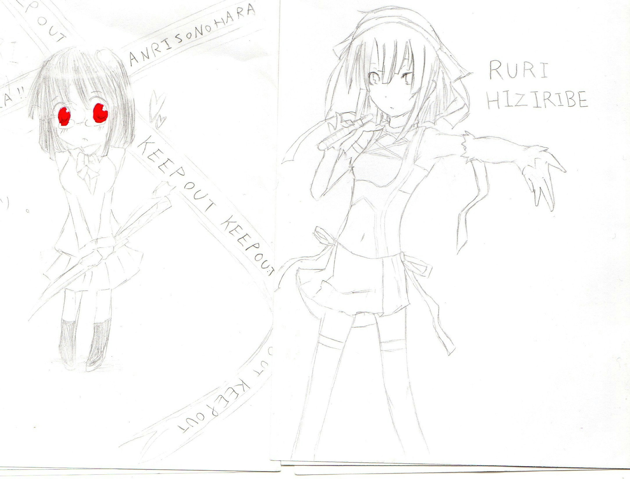 杏里ちゃんとルリちゃん。違う紙に描いてます。ルリちゃんは模写。