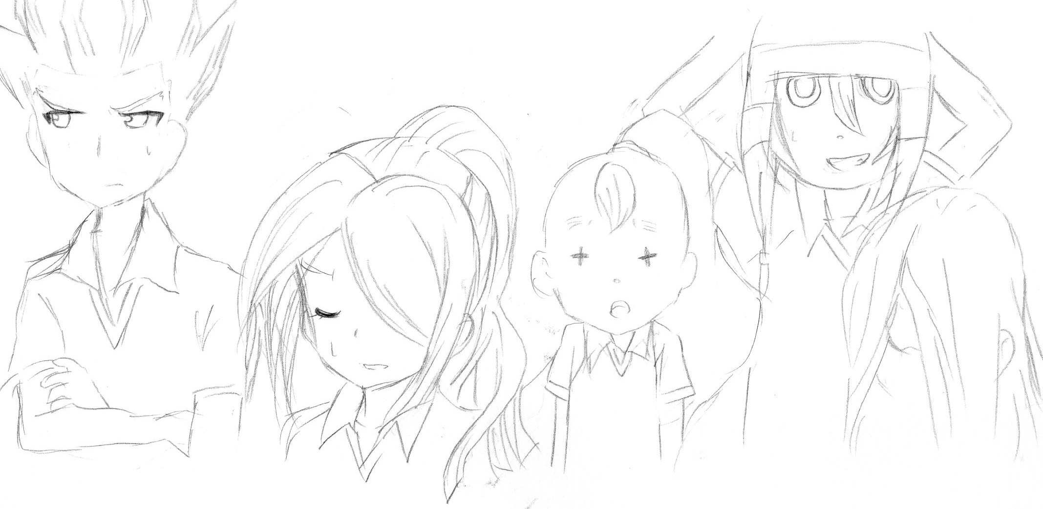 彼含む4人をいつだったかのリベンジ、構図は同じで下書きだけしてみました。