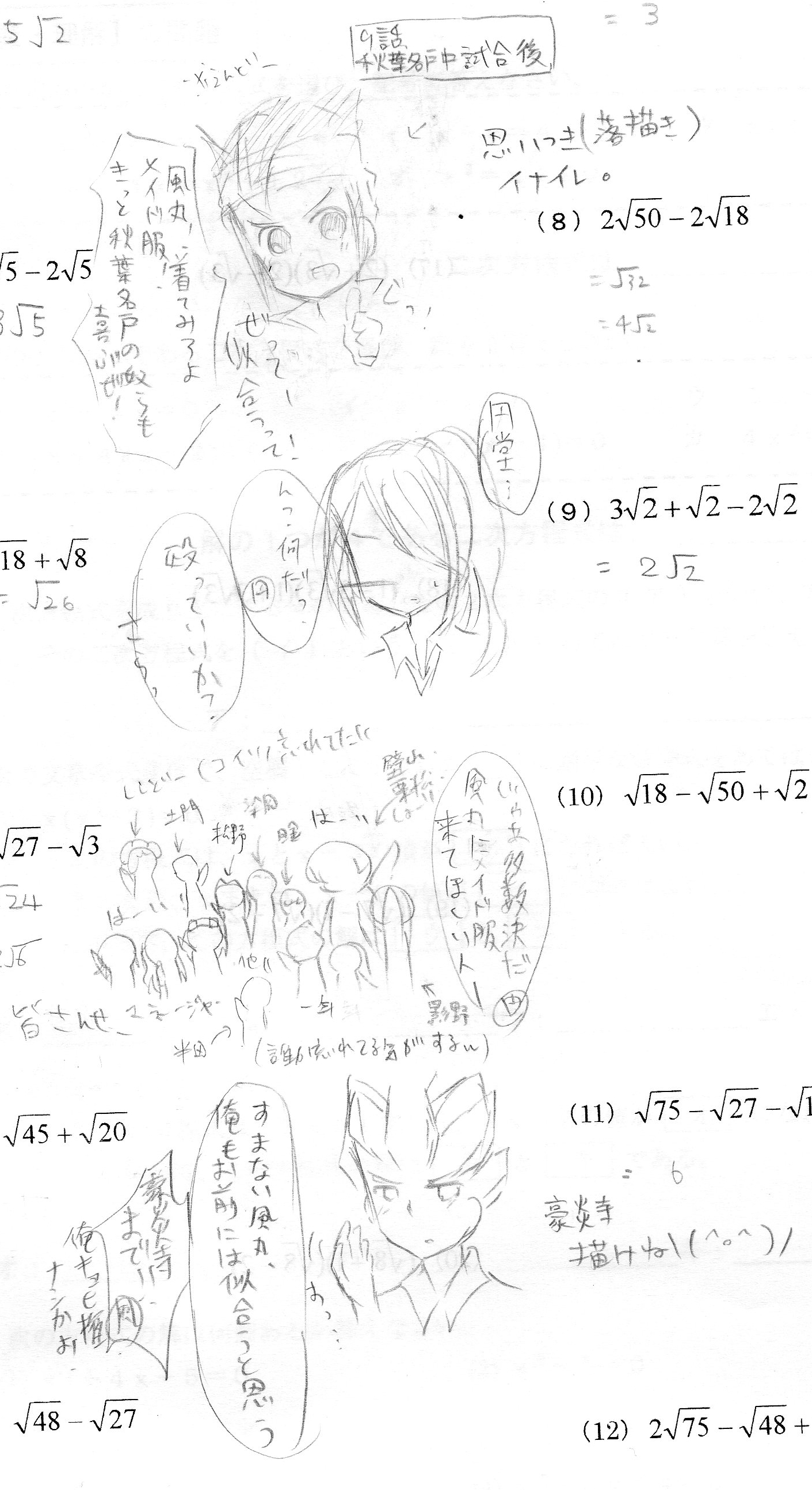 △ここから思いつき。数学の時間に(プリントに)描いてました。